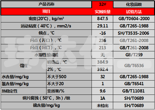 四、32號化妝級白油質(zhì)量指標(biāo) |